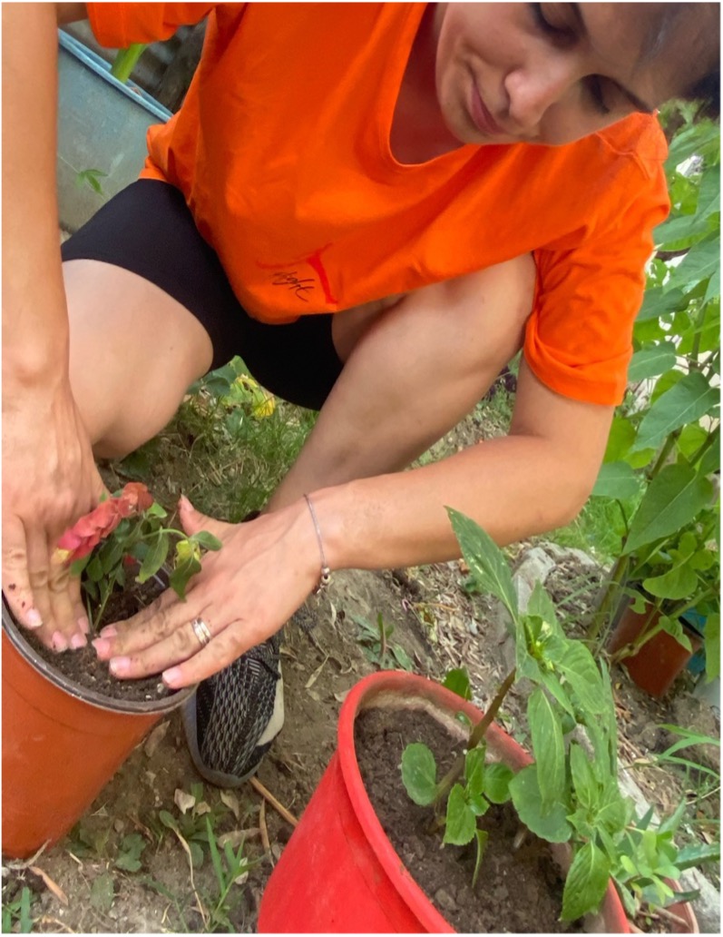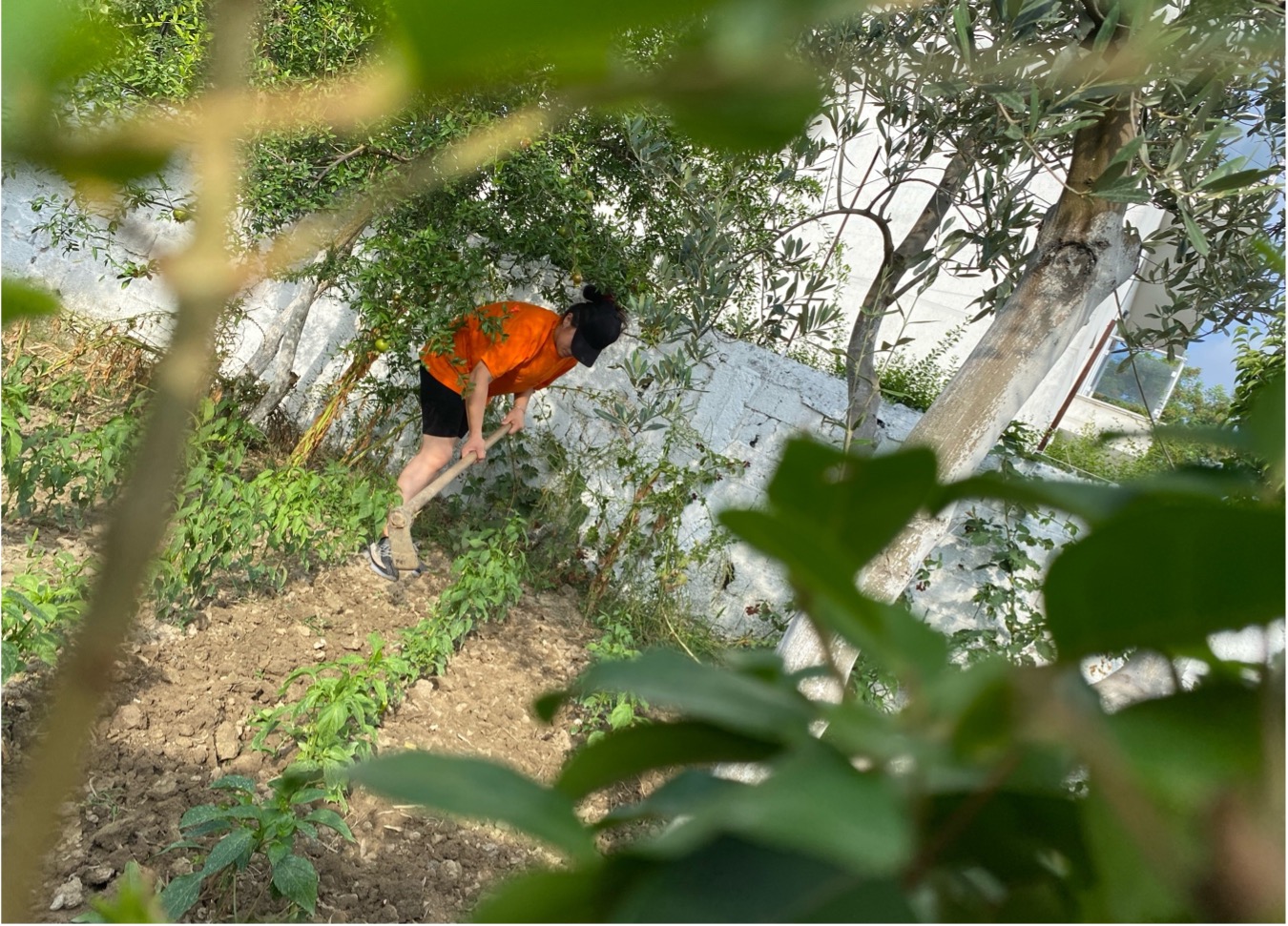 Among many vegetables outside they had planted peppers. They were in direct contact with the sun for most of the day therefore their ground needed to be gently worked and then watered to absorb the water more easily.