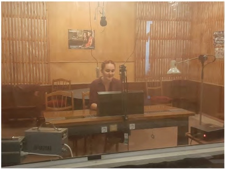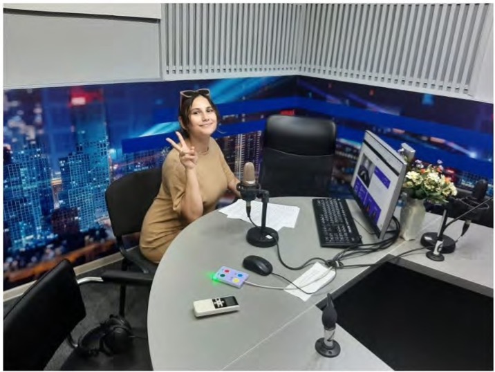 I also had the chance to go on a live show together with my teammates. As you can see, there is special equipment out of the streaming booth – that is because the studio still uses a director who is in charge of the music and they control when and for how long we go on-air. This is also because we, the young hosts, are not trained to operate such equipment.