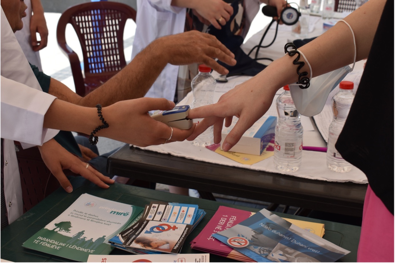 For my volunteer activity, I volunteered at an activity organized by UNICEF and the IPKO Foundation where free medical services were provided. I participated in two hours of pre-volunteer lectures that provided information about the work I had to do. My task was to take care of the organization, to welcome the passers-by and to register them in the medical register. After we shared the tasks we went to the field together with the organizers and other volunteers. The idea of this organization was of some graduates who have recently worked in the PODIUM project, during which teenagers have the opportunity to earn funds for the implementation of their projects that are done for the benefit of the community where we live. There were also doctors and nurses who also volunteered by conducting free medical examinations for bystanders. The services provided during this volunteer work that lasted almost five hours were blood sugar measurement, blood pressure measurement, oxygen measurement, temperature, and general medical examinations. Leaflets with medical content also were distributed.